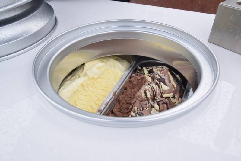 Voor het roomijs wordt verse volle melk en slagroom gebruikt.